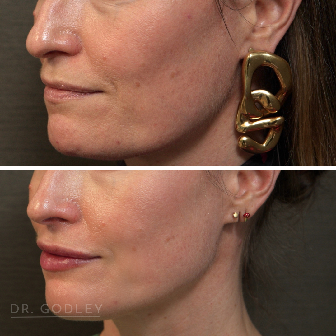 This can include the corners of the mouth, the chin, the jawline, and the skin around the lips. Sometimes the lips themselves need only a small amount of filler once the surrounding areas are supported.